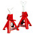 A pair of broad base professional duty axle stands with positive ratchet action for quick height adjustment and secure locking under downforce load.