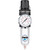 Designed to remove airborne impurities, dirt particles, condensation and oil aerosols from compressed air through air supply lines and also maintain air pressure at a set level that can efficiently operate air tools and other air operated equipment. The filter works by means of centrifugal force with a filter element while the regulator is self-relieving and provides high air flow while maintaining the set pressure with minimal pressure drop.