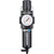 Designed to remove airborne impurities, dirt particles, condensation and oil aerosols from compressed air through air supply lines and also maintain air pressure at a set level that can efficiently operate air tools and other air operated equipment. The filter works by means of centrifugal force with a filter element while the regulator is self-relieving and provides high air flow while maintaining the set pressure with minimal pressure drop.